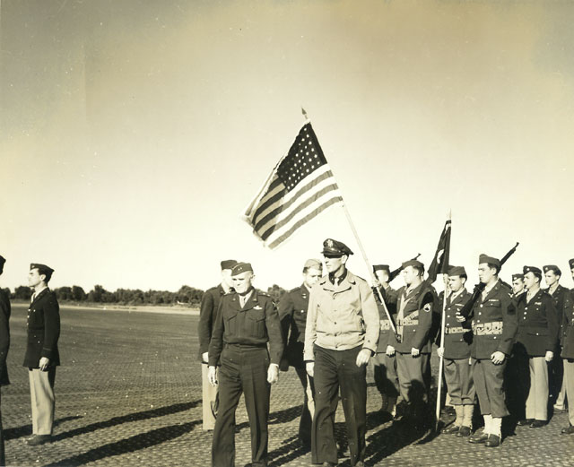 RECEIVES THE CONGRATULATIONS OF MAJOR GENERAL JOHN K. CANNON, COMMANDING