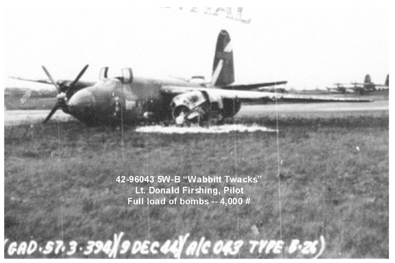 42-96243, 5W- K crashed in December 1944 at Cambrai. George "Curt" Curtis says that he was part of the crew manning this plane at the time. No