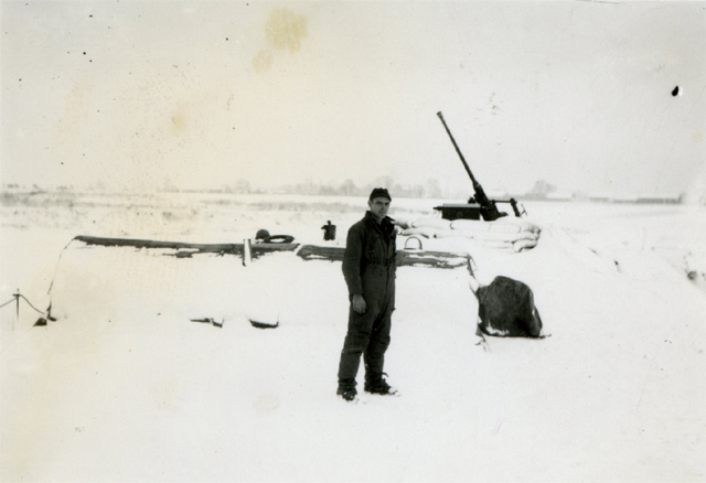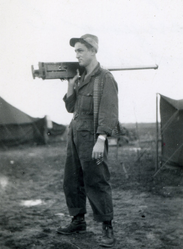 T/Sgt. Harold E. Schweighart "Carrying a 50 cal"